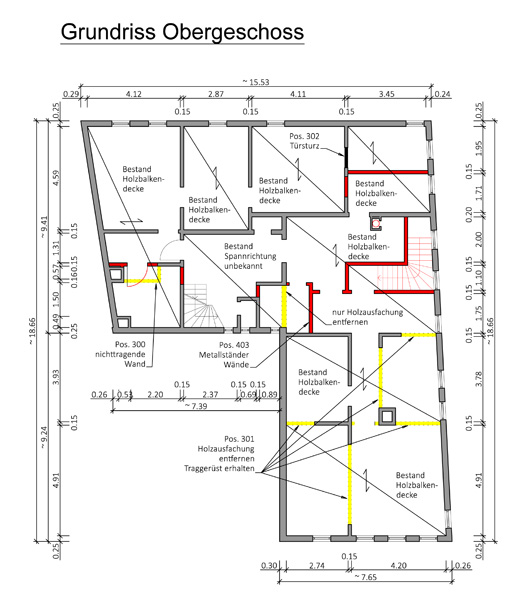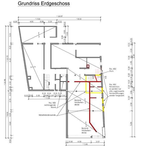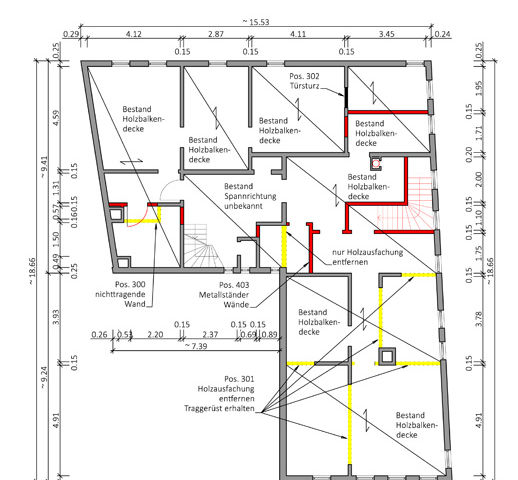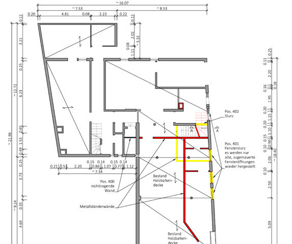 Im Gebäude wurden tragende Wände entfernt und der Brandschutz überarbeitet.